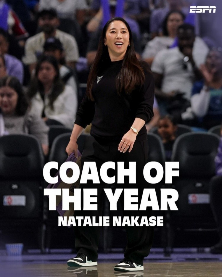 我前几天看到了特米(法格本勒)的一段引述,她就是这么说的,我非常喜欢。这就是现实——通过扩军,用那些未受保护的球员来组建一支球队。但我觉得奥赫玛实际上把这看作是一件积极的事,或者说一项挑战,而且她打造了一套全员都憋着一股劲的阵容。所以你看到这些球员,她们既要向放走她们的球队证明自己……也擅长做好那些小事,那些不被重视但实际上能帮助球队赢下比赛的事情。然后再加上一位同样充满斗志的年度最佳教练,她强调防守和强硬——这就把一切组合成了一片充满机遇的乐土。于是就有了:凯拉-索顿,全明星;维罗妮卡-伯顿,进步最快球员;珍妮尔-萨隆,最佳新秀。我觉得这些个人成就恰恰说明了我们这个团队正在建立的文化……就好像在说:如果你想让质疑者们闭嘴并赢得胜利,那就来湾区吧。(无违规招募。)